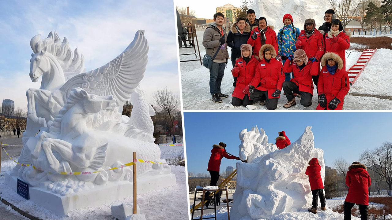 Ubon Ratchathani Vocational College, which won the International Collegiate Snow Sculpture Contest in Harbin, Heilongjian, the People’s Republic of China last year, retained its championship at the 10th International Collegiate Snow Sculpture Contest 2018, held in Harbin, Heilongjian, the People’s Republic of China during 4-7 January 2018. The Thai College also won the Best Technique Award in the contest.