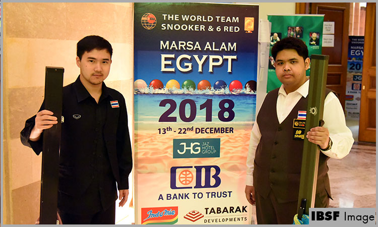 Thailand snooker men’s team comprising Thanawat Thirapongpaeboon and Passakorn Suwannawat took away the world snooker men’s team championship, while Suchakree Poomjang and Phisit Chandsri won the world snooker masters’ team championship, and Siripaporn Nuanthakhamjan and Waratthanun Sukritthanes became the world snooker women’s team champion at the International Billiards & Snooker Federation (ISBF)’s World Team Snooker & 6 Reds 2018, held in Marsa Alam, Egypt during 12-22 December 2018.