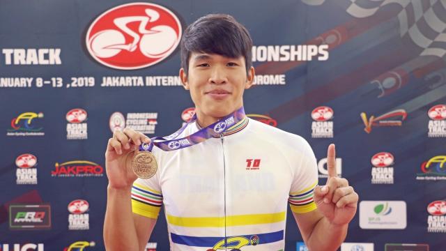 Patompob Phonarjthan made history as the first Thai cyclist to win the gold medal in the men elite’s 15 km. Scratch category in the final round of the 39th Asian Track Championships 2019, held in Jakarta, Indonesia on 10 January 2019. Patompob earns his rights from this championship to compete in the upcoming World Track Championships to be held in Poland around February – March 2019.
